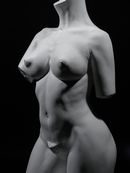大理石作品の、事実上修正が不可能な不可逆的世界と、石膏・粘土作品の可塑性の世界の違いはあるが、私の作品は光と影を調律して、