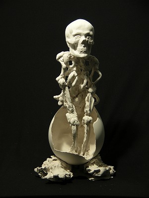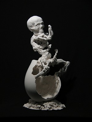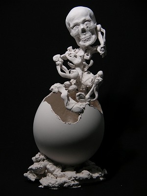 「死」は大きな卵殻の中心からためらいがちに立ち上がる。