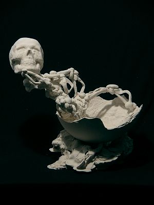 Here, death may rise timidly from the center of a large egg-shell--